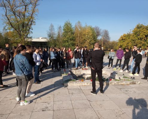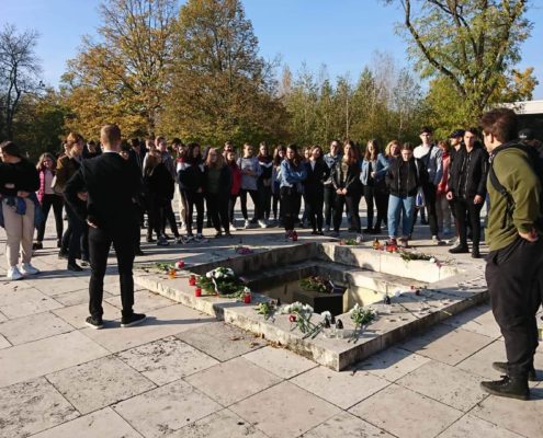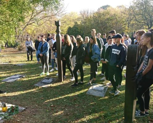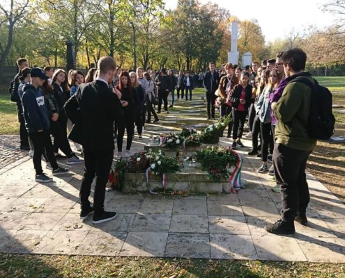 A 9.A, 10.B és a 10.T osztályok a Rákoskeresztúri Új Köztemetőben lévő 301-es parcellához látogattak el.