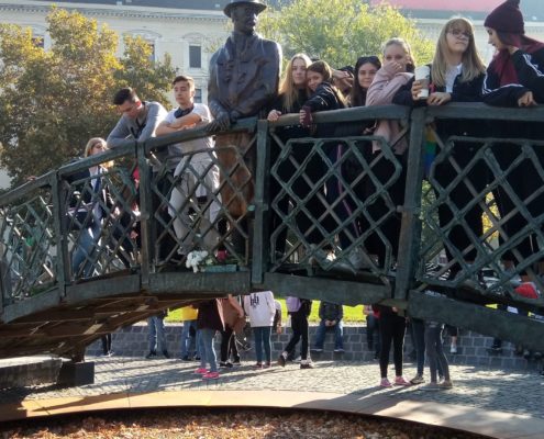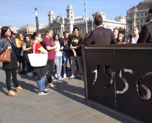A 9.T, 9.B és a 9.Nyek osztályok a Jászai Mari téren lévő a Nagy Imre szobornál helyeztek el mécseseket és virágot, majd a Kossuth téren, a sortűz emlékhelyén vettek részt egy idegenvezetésen.
